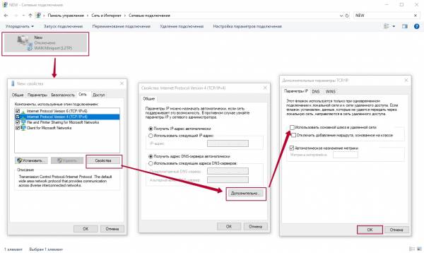 Если ничего не изменить, то новое соединение VPN система станет использовать в качестве шлюза по умолчанию и все остальные маршруты будут недоступны. В том числе ваше подключение к сети интернет.